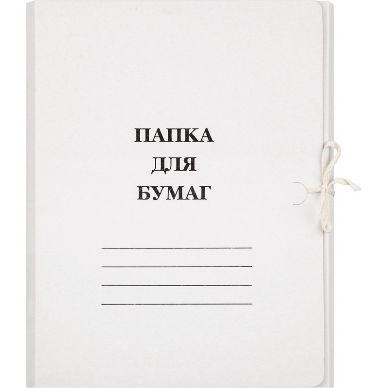 Папка для бумаг формата А4 с завязками изготовлена из мелованного картона белого цвета (плотность 380 г/кв. м). На лицевой стороне есть поля для подписывания. Внутренние клапаны препятствуют выпадению документов. Папка картонная на завязках вмещает до 200 листов стандартной плотности. Размер изделия - 225x20x315 мм. Картон - экологически чистый и пригодный для переработки материал.