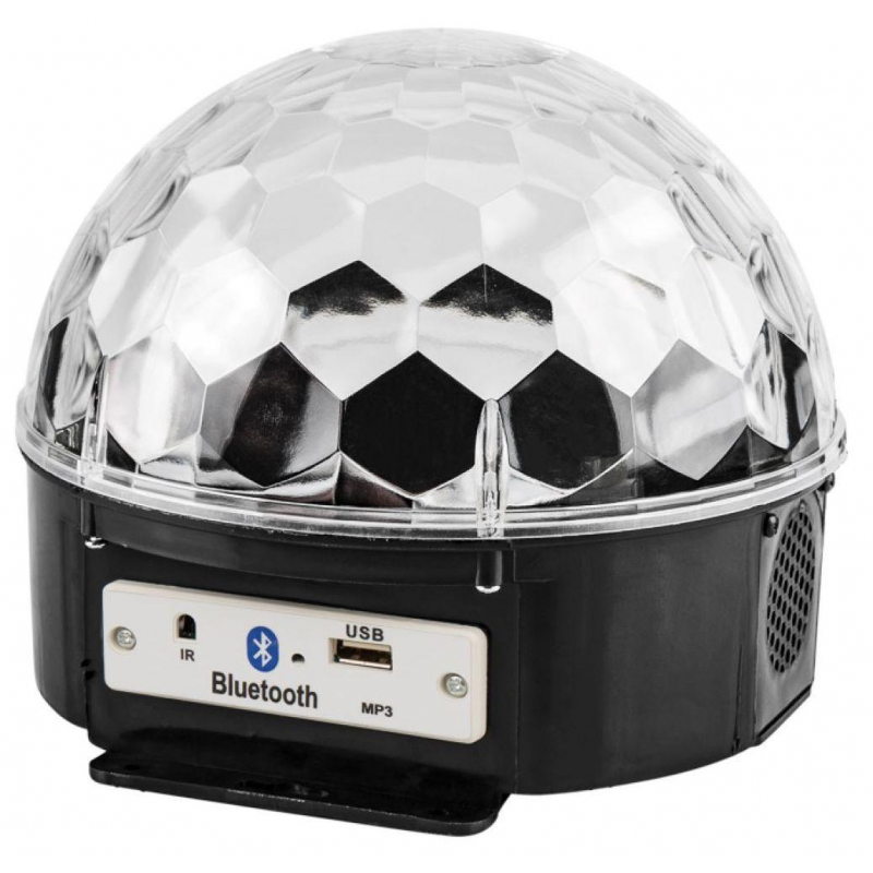 Светодиодная система 'Диско-шар' с пультом дистанционного управления и функцией сопряжения через Bluetooth - устройство для создания эффекта светомузыки, которое поможет организовать веселую вечеринку там, где есть электрическая розетка. 6 ярких диодов RGB светятся разными цветами, а вращающийся купол разносит задорные блики. Диско-шар умеет подстраиваться под ритм звучащей музыки благодаря встроенному датчику. Можно воспроизводить треки прямо с устройства через USB-флешку. Изделие устанавливается на поверхности или монтируется на стену, потолок. Обращаем Ваше внимание, что элемент питания идет в комплекте.