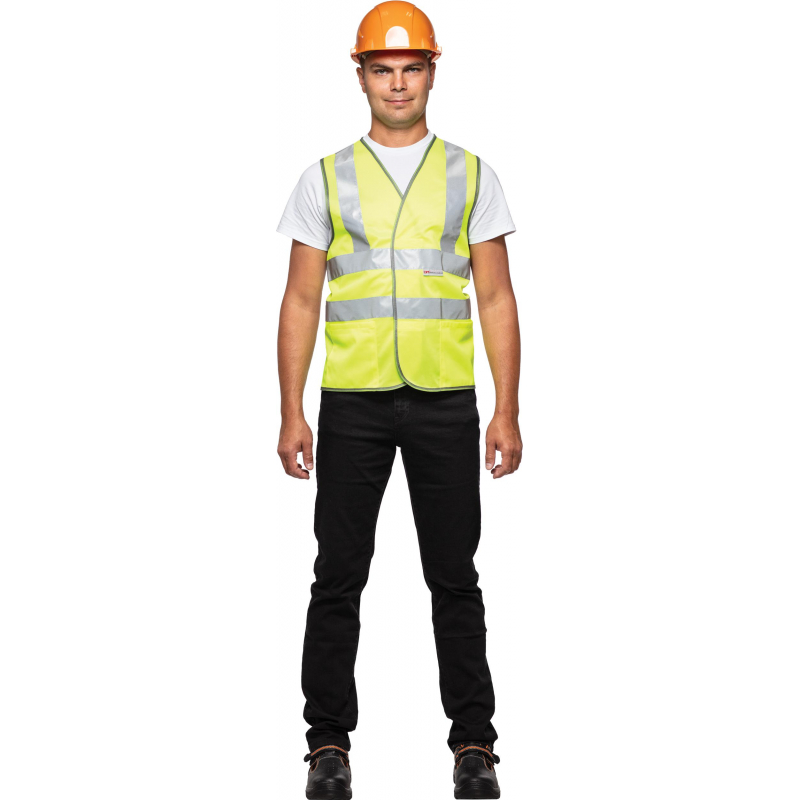Сигнальный жилет незаменим при проведении ремонтно-строительных работ на проезжей части или железной дороге и в других опасных зонах. Рекомендован к использованию работниками коммунальных служб, водителями автомобилей, пешеходами и велосипедистами. Сочетание неонового лимонного цвета и светоотражающих полос обеспечивает его заметность как днем, так и в темное время суток. Жилет с центральной застежкой на ленту-липучку надевается поверх другой одежды. Изделие соответствует второму классу защиты, изготовлено из 100% полиэфира плотностью 130 г/кв.м. Ширина светоотражающей ленты - 50 мм. Дополнительно к типовому размеру применена надбавка на свободу облегания, для использования с верхней одеждой.Коллекция сигнальных жилетов Тип Т представлена в лимонной и оранжевой неоновой расцветке. Представлены жилеты типов 1Т, 2Т, 5Т, 8Т. Класс риска: 2. Класс защиты: 2.