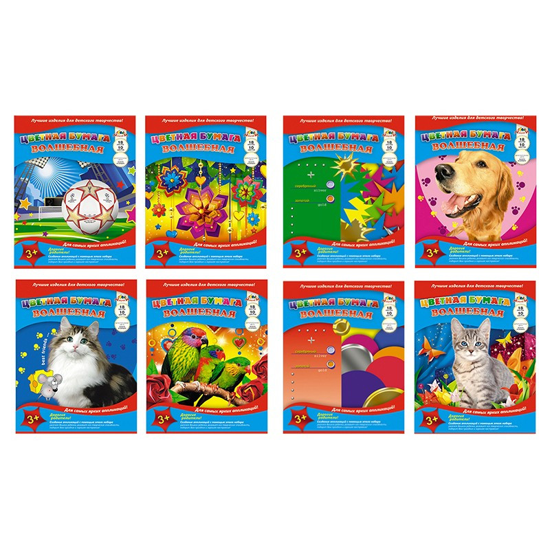 Набор офсетной (10 цветов на 18 листах) цветной бумаги подходит для создания аппликаций, оригами, изготовления поделок. Работа с цветной бумагой способствует развитию мелкой моторики у детей. В наборе листы размером 200x260 мм, плотность - 50 г/кв.м. Внутренний блок - офсет №2, двойной прокрас с одной стороны. Набор упакован в обложку из офсетной бумаги. Тип крепления - на скрепке. Внутренний блок - офсет №2, двойной прокрас с одной стороны. В наборе цвета: красный, желтый, синий, черный, розовый, оранжевый, зеленый, коричневый и 2 листа мелованной бумаги: золотой и серебряный. Внимание! Товар поставляется в нескольких вариантах дизайна упаковки (без возможности выбора).