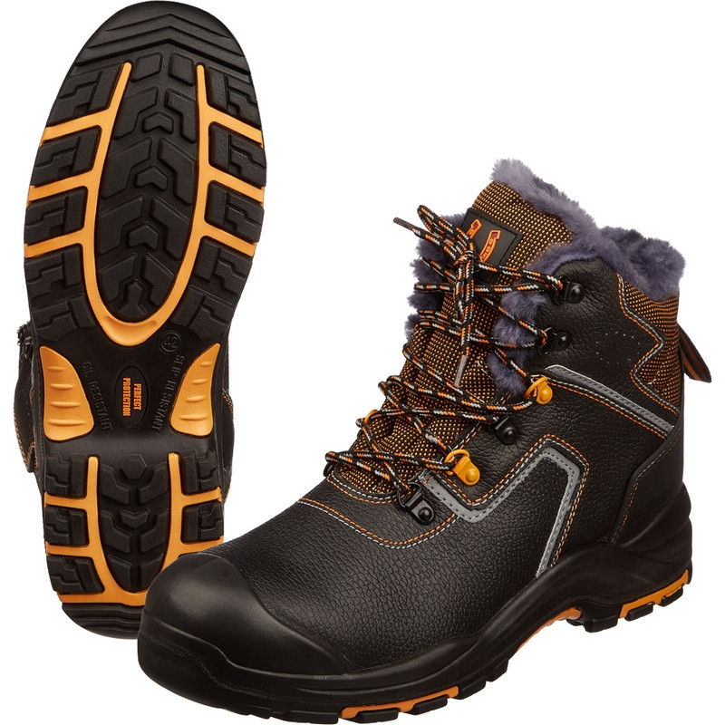 Ботинки утепленные Perfect Protection выполнены в черном цвете. Размер 36. Обувь рекомендована к использованию в строительстве, озеленении территории, ЖКХ, промышленности, логистике, нефтегазовой промышленности. Верх обуви выполнен из натуральной кожи. Рабочая обувь из натуральной кожи долговечна, устойчива к повреждениям, комфортна в носке. Натуральная кожа обладает воздухопроницаемыми свойствами, не дает ногам потеть. Фиксируется обувь на ноге с помощью шнурков, которые плотно обхватывают стопу, улучшая комфорт ношения. Утеплитель из натурального меха обладает высокими гигиеническими показателями: влагопоглощение и паропроницаемость, рассчитан на температурные режимы до -30 °C в сухой среде. Таким образом, данная обувь хорошо защищает от пониженных температур воздуха. Композитный (поликарбонатный) подносок защищает от ударов в носочной части силой 200 Дж, а стальная стелька - от проколов. Подошва из полиуретана с нитрилом (ПУ+НР): маслобензостойкая, кислотощелочестойкая, повышенная стойкость к контакту с нагретой поверхностью (до 300 °С). Подошва обладает прекрасным сопротивлением к скольжению, устойчива к деформации и стиранию. Промежуточный слой из полиуретана придает подошве легкость, а ходовой слой из нитрильной резины (нитрил) устойчив к многократному изгибу, деформации и истиранию, что увеличивает срок службы изделия. Литьевой метод крепления подошвы обеспечивает надежное скрепление, а значит долгий срок службы и высокую гибкость, тем самым уменьшая усталость ног. Обувь выдерживает температурные режимы от -40 до 300 °C (в течение 60 секунд). Соответствует стандартам ТР ТС 019/2011. Гарантийный срок составляет 70 дней при соблюдении правил ухода, эксплутации и хранения. Цвет на изображении товара в интернет-магазине или в печатном каталоге может отличаться от оригинала из-за особенностей цветопередачи монитора.