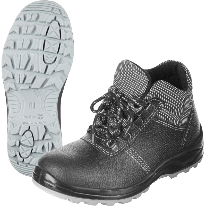 Ботинки Профи модели 71К выполнены в черном цвете. Размер 42. Универсальная мужская и женская модель из популярной линии Профи. Рекомендована для использования в большинстве отраслей промышленности, сельском хозяйстве, строительстве, транспорте, а так же для работников нефтеперерабатывающих и металлообрабатывающих предприятий. Материал верха - влагостойкая натуральная кожа высокого качества, которая обеспечивает хороший воздухообмен и эстетичный вид. Полнотно-размерные характеристики применяемой при производстве обувной колодки, обеспечивают удобство в носке и позволяют не ощущать усталости в течение всего рабочего дня. Мягкий кант из высококачественного полиэстера "Оксфорд", стойкого к истиранию и обладающего водоотталкивающими свойствами, анатомической формы создает удобство при ходьбе. Подкладка из текстильного материала, обеспечивает сухость, поддерживает оптимальный и стабильный микроклимат внутри ботинка. Специально разработанная модель подблочника из натуральной кожи, для плотной шнуровки анатомической формы повышает устойчивость конструкции и обеспечивает повышенную защиту ноги от травм. Шнурки с внутренним сердечником оптимального размера. Пластиковый, плотно прилегающий наконечник препятствует расплетению шнурка. Плотное частое плетение из тонкой пряжи-обеспечивает скольжение в петлях, что гарантирует долгий срок эксплуатации. Гибкая двухслойная подошва из полиуретана устойчива к воздействию нефти, нефтепродуктов, масел и бензина. Клапан-язык обеспечивает комфорт в носке и исключает попадание внутрь мелких предметов, брызг, пыли. Промежуточный слой из вспененного полиуретана обеспечивает дополнительную теплоизоляцию стопы, снижает вес обуви, нагрузку при ходьбе. Также придает обуви легкость и комфорт. Ходовой слой из термопластичного полиуретана улучшает сопротивление скольжению. Глубина профиля (протектора) ходового слоя подошвы 4,5 мм и элементы подошвы обеспечивают защиту от скольжения по зажиренным поверхностям, а рисунок протектора обеспечивает самоочищение подошвы от загрязнений. Специально разработанный вкладыш "SU-jump" внутри пяточной части подошвы обеспечивает снижение усталости при ходьбе, амортизацию в пяточной части подошвы и исключает возможность прокола. Стандартная полнота стельки, из тканого материала. Обувь должна быть выдана в эксплуатацию по назначению, размеру и полноте. После окончания работы обувь должна быть очищена от загрязнений без повреждения материала верха и низа, протерта и оставлена в вентилируемом помещении в раскрытом и расправленном виде для проветривания на расстоянии не менее 0.5 м от обогревательных приборов. Не допускается чистить обувь органическими растворителями. Обувь должна систематически, один раз в неделю смазываться обувным кремом, изготовленным по НД. Допустимое время непрерывного пользования не более 9 ч. Предназначены для защиты от общих производственных загрязнений, от механических повреждений. Гарантийный срок носки обуви составляет 70 дней с даты выдачи ее в эксплуатацию. Соответствуют стандартам ГОСТ 28507-99, ГОСТ Р 12.4.187-97, ГОСТ 12.4.137-2001, ТР ТС 019/2011. Цвет на изображении товара в интернет-магазине или в печатном каталоге может отличаться от оригинала из-за особенностей цветопередачи монитора.