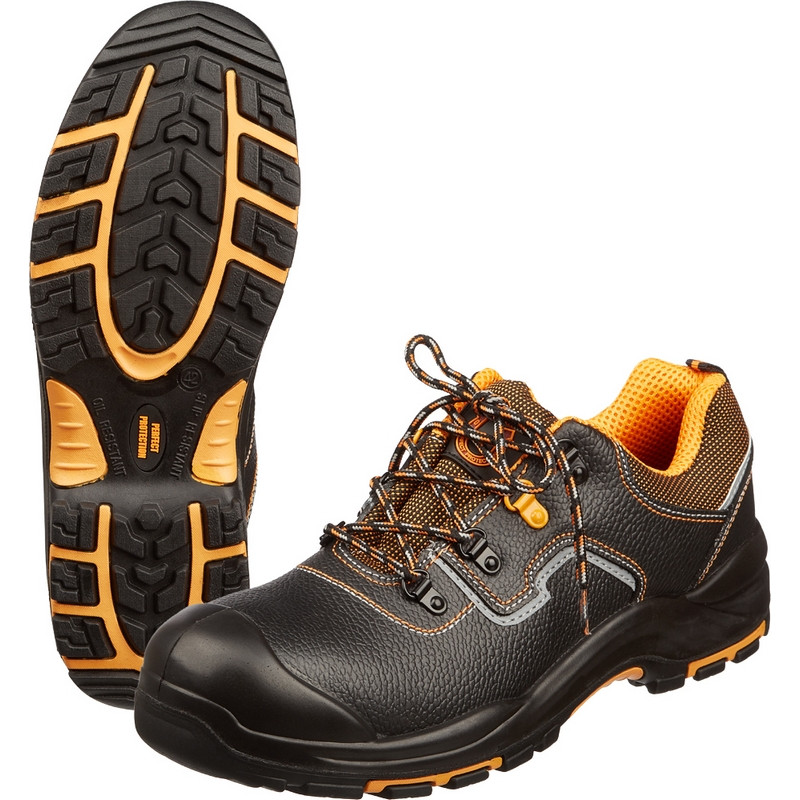 Полуботинки летние модели Perfect Protection подойдут как для мужчин, так и для женщни. Выполнены в черном цвете. Размер 41. Полуботинки подойдут для использования в нефтегазовой промышленности, тяжелой промышленности, логистике. А также в сфере строительства, озеленения территории/ЖКХ. Материал верха из натуральной кожи. Натуральная кожа обладает воздухопроницаемыми свойствами, не дает ногам потеть. Эргономичная форма подошвы снижает усталость ног. Фиксируется обувь на ноге с помощью шнурков, которые плотно обхватывают стопу, улучшая комфорт ношения. В качестве подкладки используется современный подкладочный материал 'Типика' на нетканой основе. Сетчатый материал эффективно отводит влагу от стопы, а также обеспечивает гигиеничность. Композитный (поликарбонатный) подносок, который выдерживает силу удара до 200 Дж, что снижает количество травм на производстве. Полиуретановая с нитрилом подошва (ПУ+НР) устойчива к воздействию химических факторов (нефть, масла, щелочь и кислота). Подошва обладает прекрасным сопротивлением к скольжению, устойчива к деформации и стиранию. Промежуточный слой из полиуретана придает подошве легкость, а ходовой слой из нитрильной резины (нитрил), устойчив к многократному изгибу, деформации и истиранию, что увеличивает срок службы изделия. Литьевой метод крепления подошвы обеспечивает надежное скрепление, а значит долгий срок службы и высокую гибкость, тем самым уменьшая усталость ног. Антипрокольная стелька из металла, как и подносок, защищая стопу от травм. Обувь выдерживает температурные режимы от -40 до 300 °C (в течение 60 секунд). Гарантийный срок составляет 70 дней при соблюдении правил ухода, эксплутации и хранения. Данная модель маслобензиностойкая, предназначена для защиты от общих производственных загрязнений, от кислот и щелочей, от ударов, от проколов. Соответствуют стандартам ГОСТ 12.4.032-95, ГОСТ 12.4.033-77, ГОСТ 12.4.137-2001, ГОСТ 12.4.177-89, ГОСТ 28507-99, ГОСТ Р 12.4.187-97, ТР ТС 019/2011. Цвет на изображении товара в интернет-магазине или в печатном каталоге может отличаться от оригинала из-за особенностей цветопередачи монитора.