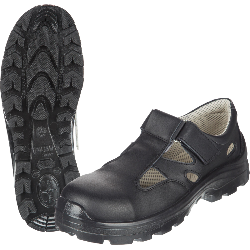 Полуботинки с перфорацией (сандалии) Алми универсальные и для мужчиин, и для женщин. Выполнены в черном цвете. Соответствуют размеру 47. Артикул производителя 80302-011600. Специальные полуботинки предназначены для работников сферы обслуживания, текстильной, пищевой и легкой промышленности. Верх обуви из искусственной кожи с композитным подноском. Утеплителя в полуботинках не предусмотренно. Подошва данной модели из полиуретана. Метод крепления подошвы литьевой. Стелька из тканного материала - текстиль. Предназначены для защиты от общих производственных загрязнений, а так же от механических воздействий. Соответствуют стандартам ТР ТС 019/2011, ГОСТ Р 12.4.187-97, ГОСТ 12.4.137-2001, ГОСТ 28507-99. Цвет на изображении товара в интернет-магазине или в печатном каталоге может отличаться от оригинала из-за особенностей цветопередачи монитора.