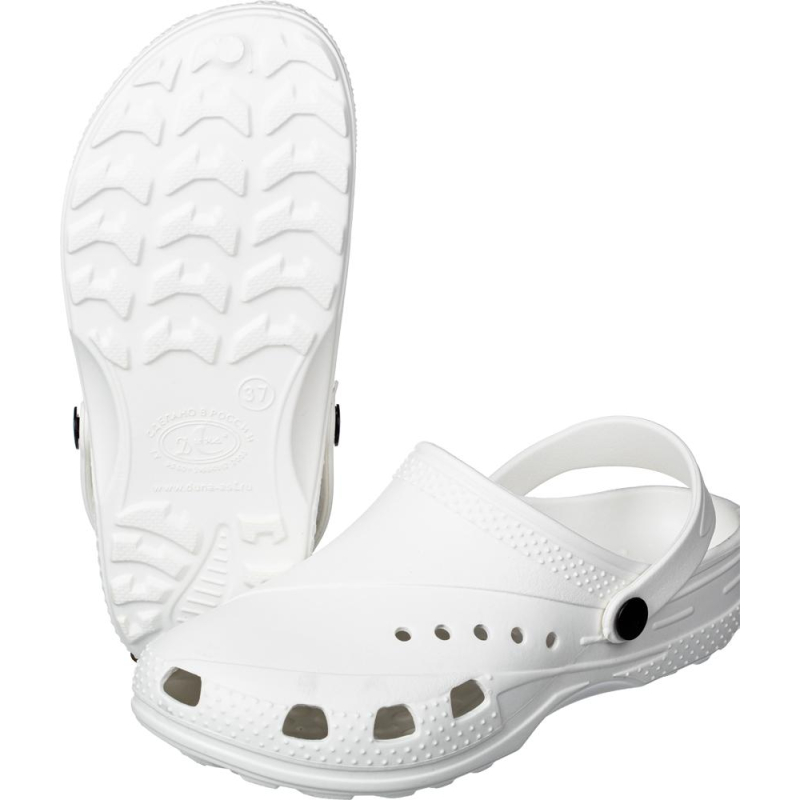 Сабо женские модел 601/06 в белом цвете. Размер 35. Обувь рекомендована к использованию в медицинских учреждениях, учреждениях общественного питания и в пищевом производстве. Модель изготовлена полностью из материала ЭВА. Материал экологически чистый. Полимерный материал не впитывает влагу, за счет чего гигиеничен, легко ухаживать (можно мыть в мыльной воде). Имеет очень малый вес и высокую амортизацию материала, что снижает усталость ног работника. Подошва сабо обеспечивает надежную поддержку стопы. Метод изготовления - литьевой. Литьевой метод крепления подошвы является самым надежным методом скрепления верхней части и подошвы ботинок, таким образом, обеспечивается герметичность обуви. Внутренняя поверхность подошвы имеет анатомическую форму, благодаря этому увеличивается комфорт ношения. Благодаря материалу ЭВА - DU-Care, сабо износоустойчивы, обладают упругостью и эластичностью, легкостью. Модель оснащена удобным поворотным ремешком, который надежно фиксирует ногу и не создает неудобств при ходьбе. Сабо очень эргономичны, что позволяет легко снимають и надевать их. Модель имеет вентиляционные отверстия вокруг носка, что позволяет ногам дышать. Гарантийный срок эксплуатации составляет 45 дней при условии соблюдения правил ухода, эксплуатации и хранения. Данная модель маслобензиностойкая, предназначена для защиты от кислот и щелочей, от скольжения, а так же от общепроизводственных загрязнений. Соответствуют стандартам ГОСТ 26167-2005, ТР ТС 017/2011. Цвет на изображении товара в интернет-магазине или в печатном каталоге может отличаться от оригинала из-за особенностей цветопередачи монитора.