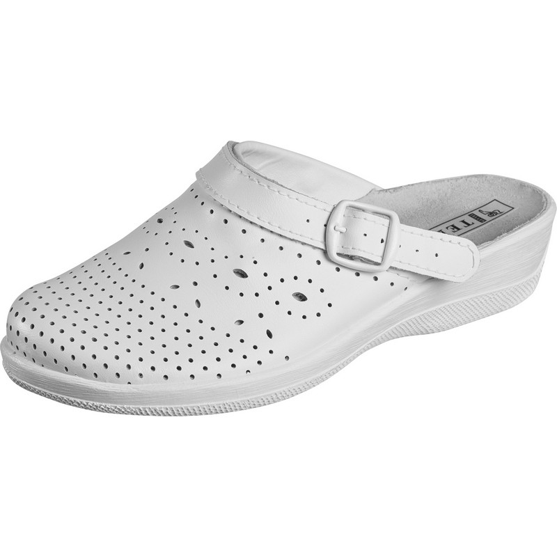 Туфли сабо модели Яна являются удобной женской обувью и используются в медицинских учреждениях, в легкой промышленности и как повседневная обувь. Выполнена модель в белом цвете. Размер 36. Изготавливаются из натурального спилка (кожа) толщиной 1,8. Поворотный регулируемый ремешок может располагаться впереди, для декорации, и сзади, для фиксации пятки. Подошва на танкетке литьевого метода крепления с четким нескользящим протектором на облегченном ПВХ. Срок эксплуатации 90 дней, срок хранения 36 месяца при соблюдении условий эксплуатации, хранения и транспортировки. При длительном воздействии пониженных температур от -20 °C материал, из которого изготовлена обувь, теряет свои свойства и становится хрупким. Предназначены для защиты от общих загрязнений. Соответствуют стандартам ТР ТС 017/2011. Цвет на изображении товара в интернет-магазине или в печатном каталоге может отличаться от оригинала из-за особенностей цветопередачи монитора.