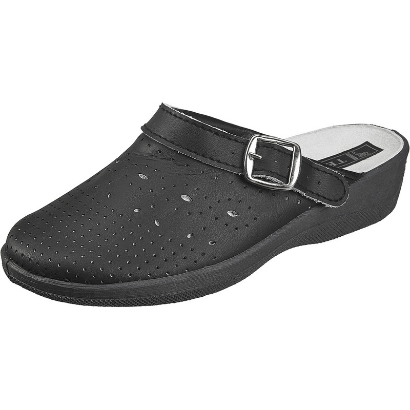Туфли сабо модели Яна являются удобной женской обувью и используются в медицинских учреждениях, в легкой промышленности и как повседневная обувь. Выполнена модель в черном цвете. Размер 39. Изготавливаются из натурального спилка (кожа) толщиной 1,8. Поворотный регулируемый ремешок может располагаться впереди, для декорации, и сзади, для фиксации пятки. Подошва на танкетке литьевого метода крепления с четким нескользящим протектором на облегченном ПВХ. Срок эксплуатации 90 дней, срок хранения 36 месяца при соблюдении условий эксплуатации, хранения и транспортировки. При длительном воздействии пониженных температур от -20 °C материал, из которого изготовлена обувь, теряет свои свойства и становится хрупким. Предназначены для защиты от общих загрязнений. Соответствуют стандартам ТР ТС 017/2011. Цвет на изображении товара в интернет-магазине или в печатном каталоге может отличаться от оригинала из-за особенностей цветопередачи монитора.