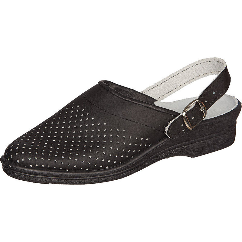 Туфли сабо являются удобной женской обувью и используются в медицинских учреждениях, в легкой промышленности и как повседневная обувь. Модель выполнена в черном цвете. Размер 40. Изготавливаются из натуральной кожи. Поворотный регулируемый ремешок может располагаться впереди, для декорации, и сзади, для фиксации пятки. Подошва сабо изготовлена из ПВХ. литьевого метода крепления с четким нескользящим протектором. Гарантийный срок эксплуатации 6 месяцев при условии применения по назначению и соблюдения правил эксплуатации, ухода и хранения. Эксплуатация обуви возможна в соответствии с сезонным назначением и в помещении. Не пригодна для условий с пониженными температурами. Температурный диапазон от +35 до 0 градусов по Цельсию. Предназначены для защиты от общепроизводственных загрязнений. Соответствуют стандартам ГОСТ 26167-2005, ТР ТС 017/2011. Цвет на изображении товара в интернет-магазине или в печатном каталоге может отличаться от оригинала из-за особенностей цветопередачи монитора.