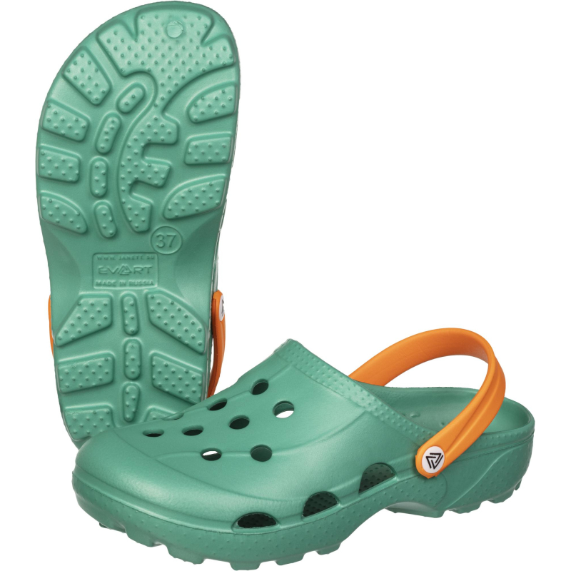 Сабо женские модели Ола выполнены в зеленом цвете с оранжевым ремешком. Размер 38. Данная модель отлично подойдет для сотрудников предприятий общественного питания, медицинских работников, работников пищевой промышленности, производств легкой промышленности и др. Верх и подошва изготовлен из маериала ЭВА. Литьевой метод крепления подошвы. Мужские сабо с открытой пяткой легко надевать и снимать. Упругая подошва способствует лучшей амортизации - ноги меньше устают, а широкая носочная часть препятствует деформации пальцев ног. Благодаря отверстиям отлично пропускает воздух. Сабо, выполненные из EVA, абсолютно мягкие, водонепроницаемые, практичные, легкие, не скользят и не требуют особого ухода. Белый цвет - бессменная классика. В таких сабо сочетается строгость, простота и стиль. Такая обувь придется по вкусу как взрослым, так и молодежи. Снимают нагрузку с позвоночника при ходьбе за счет повышенной эластичности ЭВА материала. Если Вам приходится целый день находиться на ногах, то эта модель определенно для Вас. Массажная стелька из мягкого материала снижает нагрузку на суставы и помогает Вашим ногам ощутить легкость и надолго забыть про усталость. Широкая носочная часть препятствует деформации пальцев ног. Отверстия по всей союзке создают хорошую циркуляцию воздуха и помогают ноге дышать. Дополнительные характеристики сабо: легкие, неприхотливы в уходе, не впитывают запахи, гипоаллергенны, на поверхности не развиваются бактерии и микробы. Большемерит на 1 размер. Срок годности неограничен. Минимальная рекомендованная температура эксплуатации, позволяющая сохранить свойства материала, из которого изготовлена обувь - до -10 °C. Предназначены для защиты от общепроизводственных загрязнений. Соответсвтуют стандартам ТР ТС 017/2011. Цвет на изображении товара в интернет-магазине или в печатном каталоге может отличаться от оригинала из-за особенностей цветопередачи монитора.