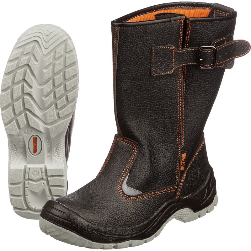 Сапоги рабочие модели Мистраль подойдут как для мужчин, так и для женщин. Выполнены в черном цвете. Размер 44. Обувь рекомендована к использованию в строительстве, озеленении территории, ЖКХ, промышленности, логистике, нефтегазовой промышленности. Рабочая обувь из натуральной кожи долговечна, устойчива к повреждениям, комфортна в носке. В качестве подкладки используется современный подкладочный материал "Типика" на нетканой основе. Сетчатый материал эффективно отводит влагу от стопы, а также обеспечивает гигиеничность. Противоударный металлический подносок защищает от ударов силой до 200 Дж. Полиуретановая с термополиуретаном подошва (ПУ+ТПУ) устойчива к воздействию химических факторов (нефть, масла, щелочь и кислота). Обувь с данной подошвой выдерживает температурные режимы от -30 до 130 °C. Подошва обуви выполнена из промежуточного полиуретанового слоя, который придает легкость, и ходового слоя из термополиуретана, устойчивого к деформациям, истираниям. Метод крепления подошвы: литьевой. Обеспечивает надежное скрепление верхней части обуви и подошвы, тем самым обеспечивая герметичность обуви. Металлическая стелька. Защитные свойства обуви: Мун 200 (защита от ударов в носочной части энергией 200 Дж), З (защита от общих производственных загрязнений). Гарантийный срок после выдачи обуви составляет 70 дней при соблюдении правил ухода, эксплутации и хранения. Соответвтуют стандартам ТР ТС 019/2011, ГОСТ 12.4.033-77, ГОСТ 12.4.137-2001, ГОСТ 12.4.177-89, ГОСТ 28507-99, ГОСТ Р 12.4.187-97. Цвет на изображении товара в интернет-магазине или в печатном каталоге может отличаться от оригинала из-за особенностей цветопередачи монитора.