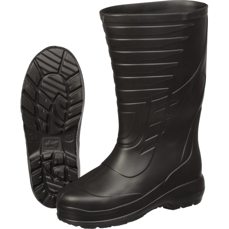 Рабочие сапоги мужские модели Неман выполнены в черном цвете. Размер 44-45. Верх и подошва сделаны из материала ЭВА. Литьевой метод крепления. Идеальное решение для мужчин в выборе обуви для осенне-зимнего сезона: прочный, водоотталкивающий материал EVA, который легко отмывать от уличной грязи. Большемерят на 1 размер. Срок годности неограничен. Минимальная рекомендованная температура эксплуатации, позволяющая сохранить свойства материала, из которого изготовлена обувь - до -10 °C. Предназначены для защиты от общих производственных загрязнений. Соответствуют стандартам ТР ТС 017/2011. Цвет на изображении товара в интернет-магазине или в печатном каталоге может отличаться от оригинала из-за особенностей цветопередачи монитора.