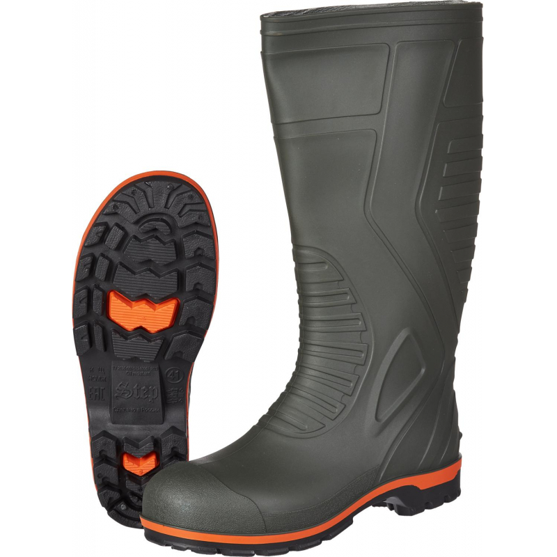 Рабочие сапоги мужские модели Инспектор подойдут так же и для женщин. Выполнены в зеленом цвете. Размер 41. Они подойдут как для строительных работ, так и для леса и города в дождливую погоду. Материал верха и подошвы из ПВХ, усиленного в самых изнашиваемых местах для более долгой службы. Имеют защитный композитный (поликарбонатный) подносок. Метод крепления подошвы к верху - литьевой. Срок эксплуатации после выдачи обуви составляет 70 дней при соблюдении правил ухода, эксплутации и хранения. Данная модель маслобензиностойкая, предназначена для защииты от кислот и щелочей. Соответствуют стандартам ГОСТ 12.4.072-79, ГОСТ 12.4.162-85, ГОСТ 12.4.177-89, ТР ТС 019/2011. Цвет на изображении товара в интернет-магазине или в печатном каталоге может отличаться от оригинала из-за особенностей цветопередачи монитора.