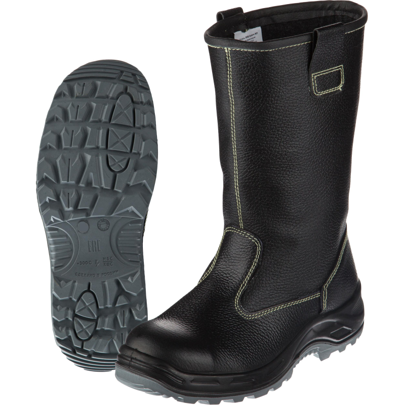 Сапоги сварщика Профи модели 60В МП подходят как для мужчин, так и для женщин. Выполнены в черном цвете. Размер 39. Рекомендована для использования в тяжелой промышленности, литейном производстве, при выполнении сварочных работ. Полнотно-размерные характеристики применяемой при производстве обувной колодки, обеспечивают удобство в носке и позволяют не ощущать усталости в течение всего рабочего дня. Натуральная кожа высокого качества обеспечивает хороший воздухообмен и эстетичный вид. Швы выполнены термоустойчивыми швейными нитями. Голенище выполнено из натуральной кожи. Для удобства носки обуви голенище с боковыми петлями. Для защиты в носочной части стопы применяются внутренние защитные носки из металла ударной прочностью 200 Дж (Мун 200), оборудованные прокладкой, препятствующей надавливанию верхнего края на стопу. Гибкая двухслойная подошва из полиуретана с ходовым слоем из резины на основе нитрильного каучука. Промежуточный слой из вспененного полиуретана обеспечивает дополнительную теплоизоляцию стопы, снижает вес обуви, нагрузку при ходьбе. Также придает обуви легкость и комфорт. Ходовой слой изготовлен из износостойкой, термостойкой (+300 °C / 60 с), морозостойкой (-40 °C) резины на основе нитрильного каучука со стойкостью к деформациям и истиранию, масло бензо стойкая. Глубина профиля (протектора) ходового слоя подошвы 4,5 мм и элементы подошвы обеспечивают защиту от скольжения по зажиренным поверхностям, а рисунок протектора подошвы обеспечивает хорошую сцепляемость с обледенелыми и замасленными поверхностями. Обладает эффектом самоочищения. Специально разработанный вкладыш "SU-jump" внутри пяточной части подошвы обеспечивает снижение усталости при ходьбе, амортизацию в пяточной части подошвы и исключает возможность прокола. Стандартная полнота стельки. Выполнена из ПВХ и тканного материала. Модель специально разработана без подкладки в голенище. Натуральная кожа - обладает паро-проницаемостью, обеспечивает сухость, поддерживает оптимальный и стабильный микроклимат внутри сапога. Обувь должна быть выдана в эксплуатацию по назначению, размеру и полноте. После окончания работы обувь должна быть очищена от загрязнений без повреждения материала верха и низа, протерта и оставлена ## вентилируемом помещении в раскрытом и расправленном виде для проветривания на расстоянии не менее 0.5 м от обогревательных приборов. Не допускается чистить обувь органическими растворителями. Обувь должна систематически, один раз в неделю смазываться обувным кремом, изготовленным по НД. Допустимое время непрерывного пользования не более 9 ч. Защищает от общих производственных загрязнений, от кислот и щелочей, от повышенных температур, от механических повреждений, от проколов, от порезов, от контакта с нагретой поверхностью. Гарантийный срок носки обуви составляет 70 дней с даты выдачи ее в эксплуатацию. Соответствует стандартам ТР ТС 019. Цвет на изображении товара в интернет-магазине или в печатном каталоге может отличаться от оригинала из-за особенностей цветопередачи монитора.