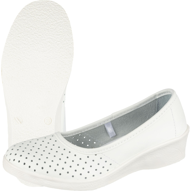 Туфли женские Алми модели Эмануэла выполнены в белом цвете. Размер 41. Предназначены для регулярной эксплуатации работниками различных отраслей. Верх обуви из натуральной кожи. Союзка выполнена с перфорацией для вентиляции ноги. Пятка закрытая. Подошва из ПВХ с литьевым методом крепления. Подошва - в форме танкетки. Стелька из натуральной кожи, стандартной плноты. Срок службы специальной обуви соответствует сроку, установленному типовыми нормами выдачи СИЗ. Гарантийный срок хранения: 3 года с даты изготовления обуви. Гарантийный срок эксплуатации обуви: 70 дней с момента получения при соблюдении требований эксплуатации. Предназначены для защиты от общепроизводственных загрязнений. Соответствуют стандартам ГОСТ Р 12.4.187-97, ТР ТС 019/2011. Цвет на изображении товара в интернет-магазине или в печатном каталоге может отличаться от оригинала из-за особенностей цветопередачи монитора. Товар относится к ценовому сегменту "суперэконом". Имеет упрощенные характеристики и более простую упаковку. Отвечает основным требованиям потребления.