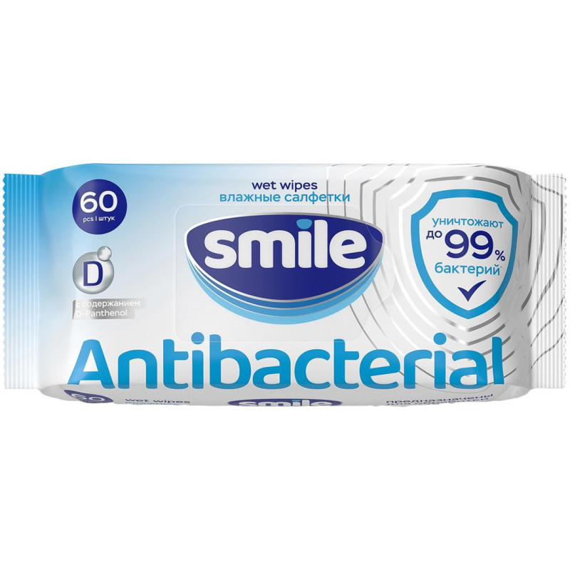 Салфетки влажные SMILE W Antibacterial с D пантенолом 60шт/уп