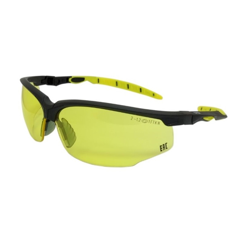 Очки защитные открытые универсальные Росомз O52 Трек NordGlass желтые. Современные легкие универсальные очки с увеличенным панорамным обзором. Очки предназначены для защиты глаз от высокоскоростных частиц (низкоэнергетический удар), УФ -излучения в производственных помещениях и на открытых площадках. Устойчивы к химическим веществам, растворам кислот и щелочей. Защита спереди и сбоку от слепящей яркости света, ультрафиолетового, инфракрасного излучения и от сочетания излучений указанных видов с воздействием твердых частиц. Особенности: регулировка угла наклона, гибкие заушники из мягкого материала обеспечивают плотное прилегание к голове, мягкий съемный носоупор. Область применения: светофильтр 2 -1,2 (янтарный) для работ, требующих точности в условиях недостаточной освещенности, повышают видимость и контрастность, для станочных работ, для медицинских учреждений. Материал защитного стекла: РС - защитное стекло из прозрачного бесцветного ударопрочного поликарбоната. Обеспечивает защиту от высокоскоростных частиц, капель жидкостей и оптического излучения. Покрытие Stronglass обладает свойствами: 1. Двустороннее водостойкое твердое незапотевающее покрытие KN; 2. Устойчиво к химическому воздействию; 3. Устойчиво к абразивам. Маркировка: FТ КN. Для изготовления оправы для данных очков использовался материал полиамид/термоэластопласт. .