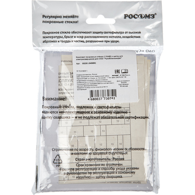 Кроме того, наши стекла имеют удобный размер 110х90мм, что позволяет использовать их с любыми масками для сварки. В упаковке Вы найдете 10 штук стекол, что позволит Вам с легкостью заменять их по мере необходимости.
